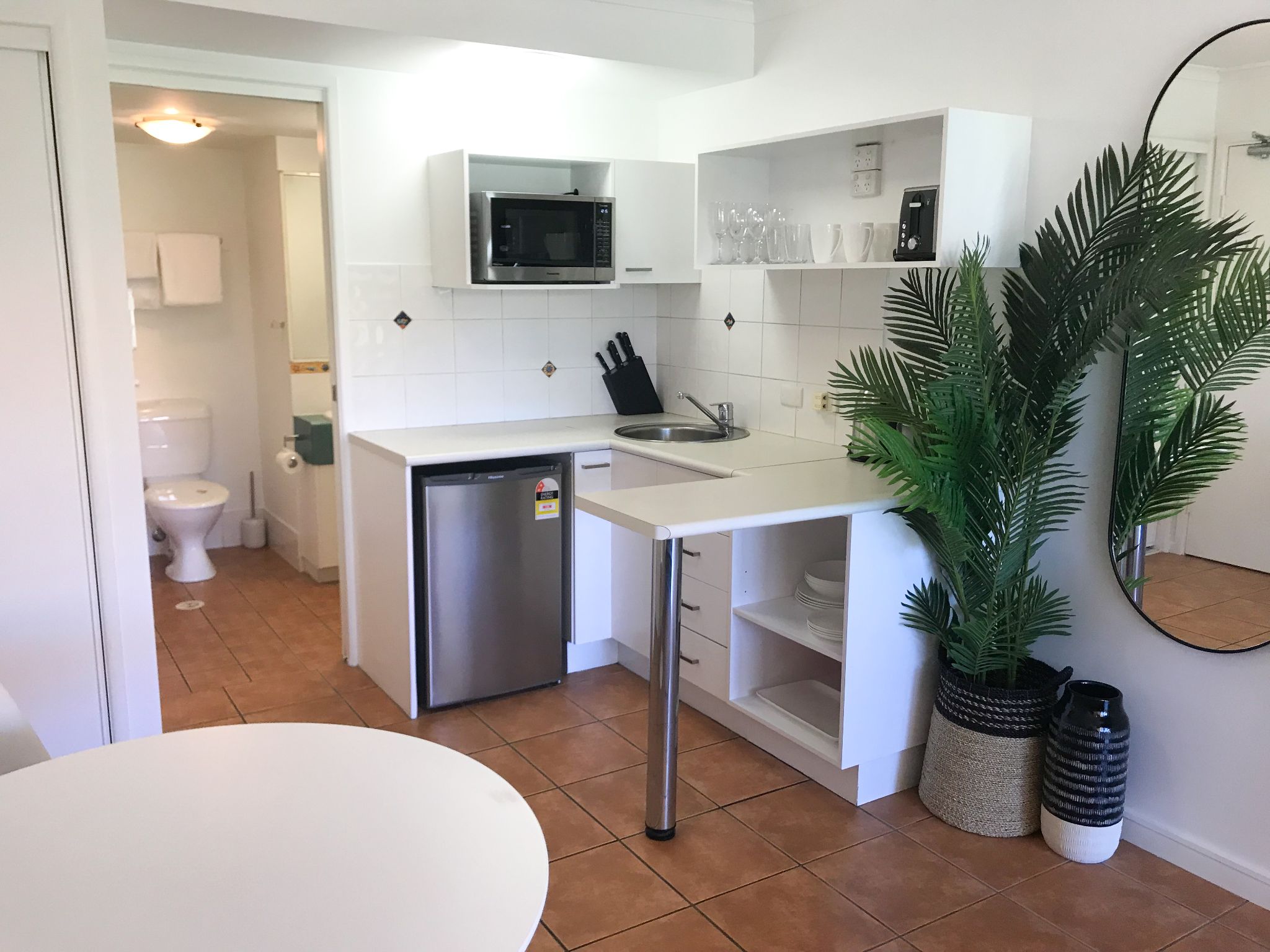 • Kitchenette with mini fridge, microwave, kettle and toaster